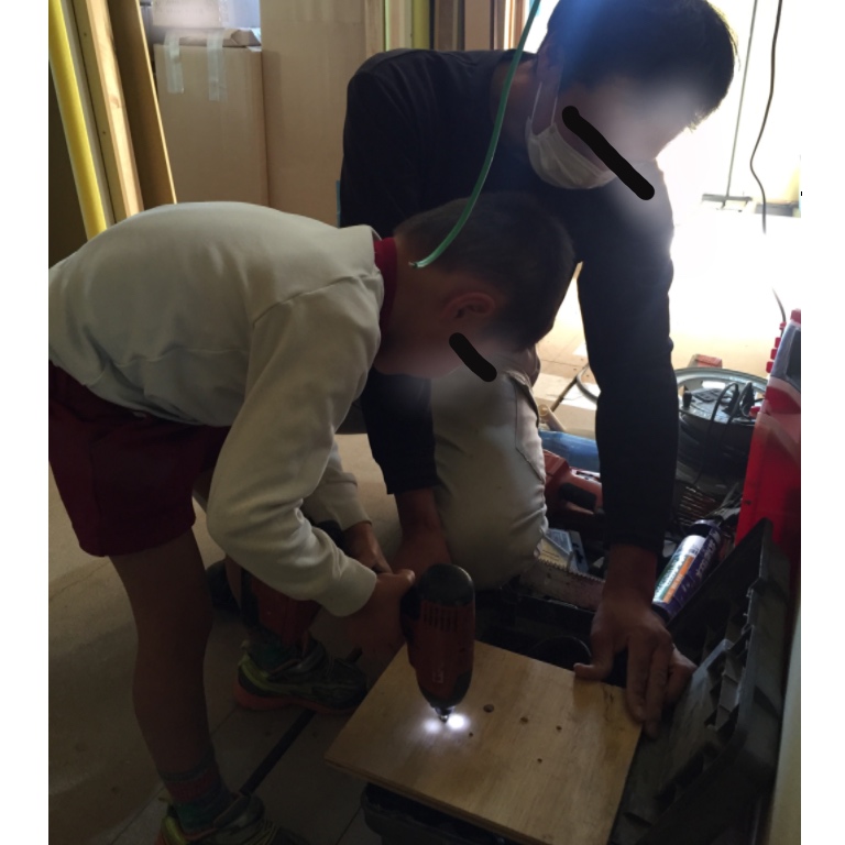穴をあけるだのの行為に興味津々()な次男に、電動ドリルを体験させてくださいました。
