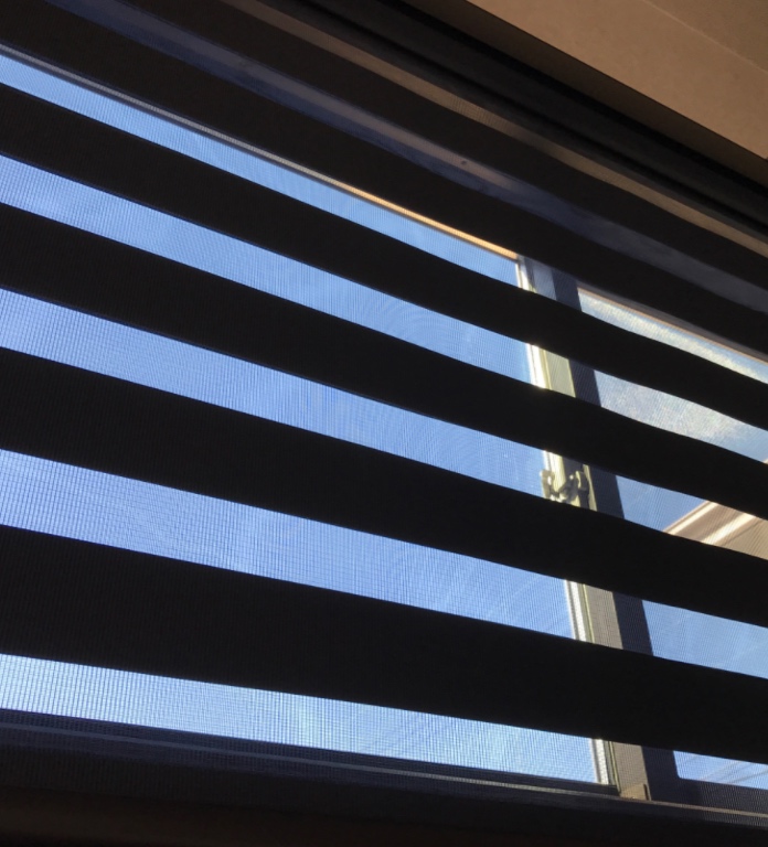 リビングの窓がカスミガラスなので、ここは夜に遮光カーテン(シェードになってる)を下ろすだけ。