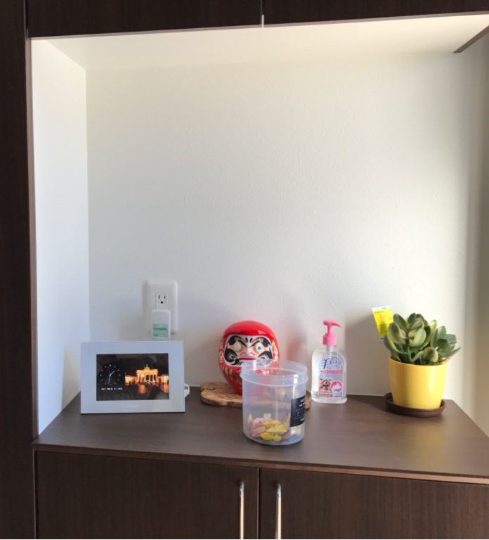 いずれ小さくてもいいから、マグネットかコルクボードを壁一面に貼ったりしたいですね。