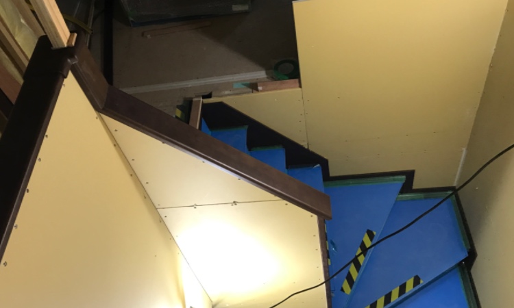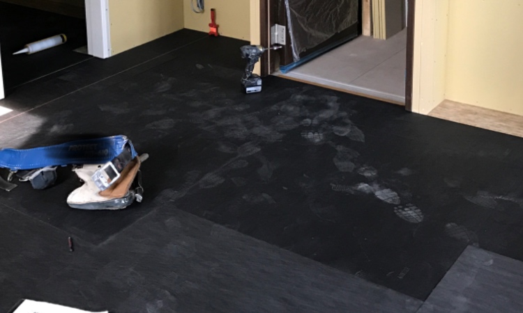 床材を貼る前に防音材が敷き詰められていきます。